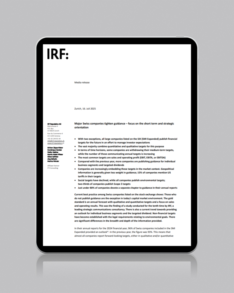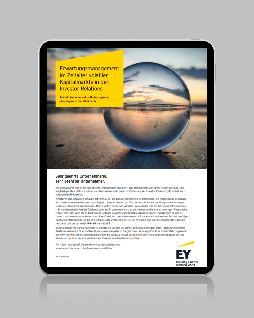 Marktstudie “Erwartungsmanagement im Zeitalter volatiler Kapitalmärkte in den IR” (German only)Survey & Studies